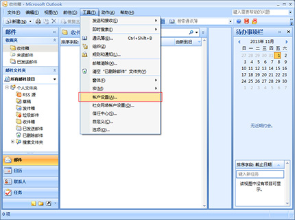第一步,打開Microsoft Outlook2007,點擊【工具】->【帳戶設置】;