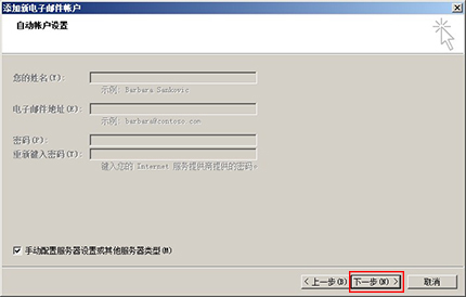 第四步,請勾選【手動配置服務器設置或其他服務器類型】,點擊【下一步】;