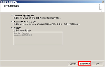 第五步,在出現的頁面勾選【Internet 電子郵件(I)】,并點擊【下一步】按鈕;
