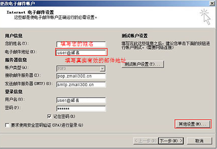 輸入完您的帳戶信息,然后點擊【其他設置】(不要勾選“要求使用安全密碼驗證(SPA)進行登錄”);