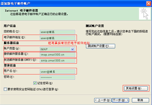 IMAP配置圖: