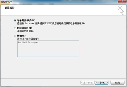 第二步,彈出如下圖的對話框,選擇【電子郵件帳戶】,點擊【下一步】;