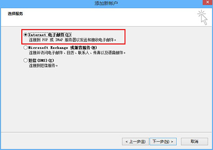 第四步,選中【Internet 電子郵件】,點擊【下一步】;