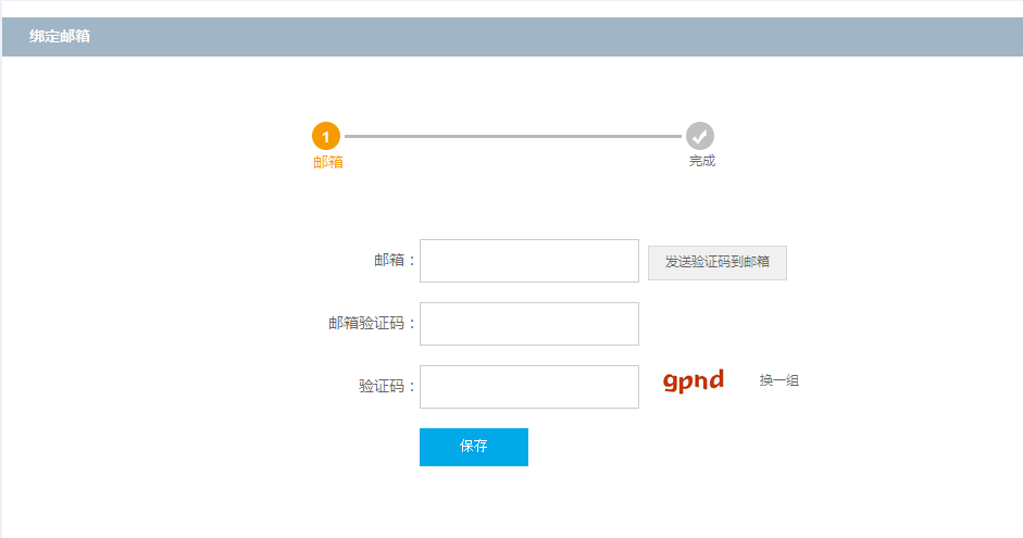2、根據頁面提示要綁定的郵箱 ,輸入發送到郵箱的驗證碼驗證郵箱有效性。輸入驗證碼,點擊【保存】即可保定成功。